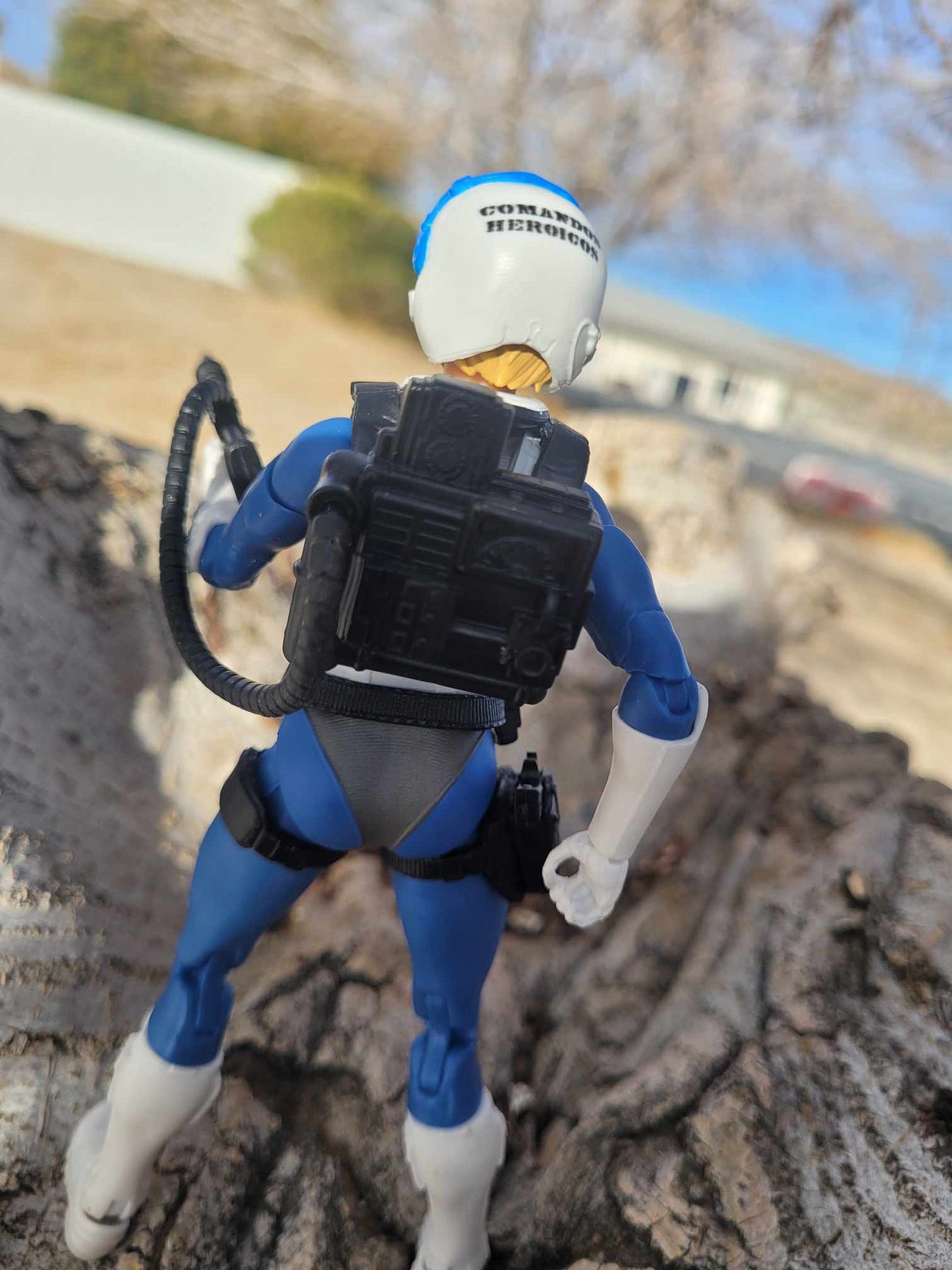 Her helmet bears the logo of the original repaint brand, now retconned as a G.I. Joe sub-team: Comandos Heroicos.