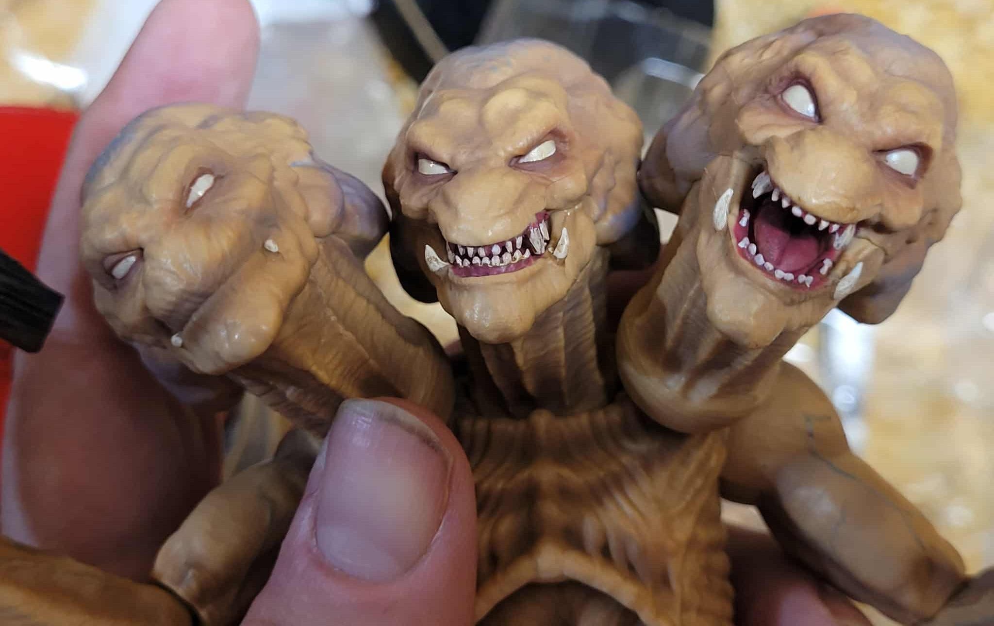 Two years on, the initial enthusiasm has been downsized a bit. They’re still predominantly a statue company, because action figures are more complicated. One of the action figures they did make, a werewolf from The Howling, was promptly one-upped and undercut in price by NECA. Macaluso has always had the inside track on the Pumpkinhead license, though, at every company he’s had. McFarlane made the first Pumpkinhead figure way back in Movie Maniacs, but ever since then, it’s been a license grabbed by Jerry, who has access to the original props for scanning and replication. So one thing Syndicate has done right is get him out there, as a 1/10 scale figure, a 1/6 scale figure, and a statue.