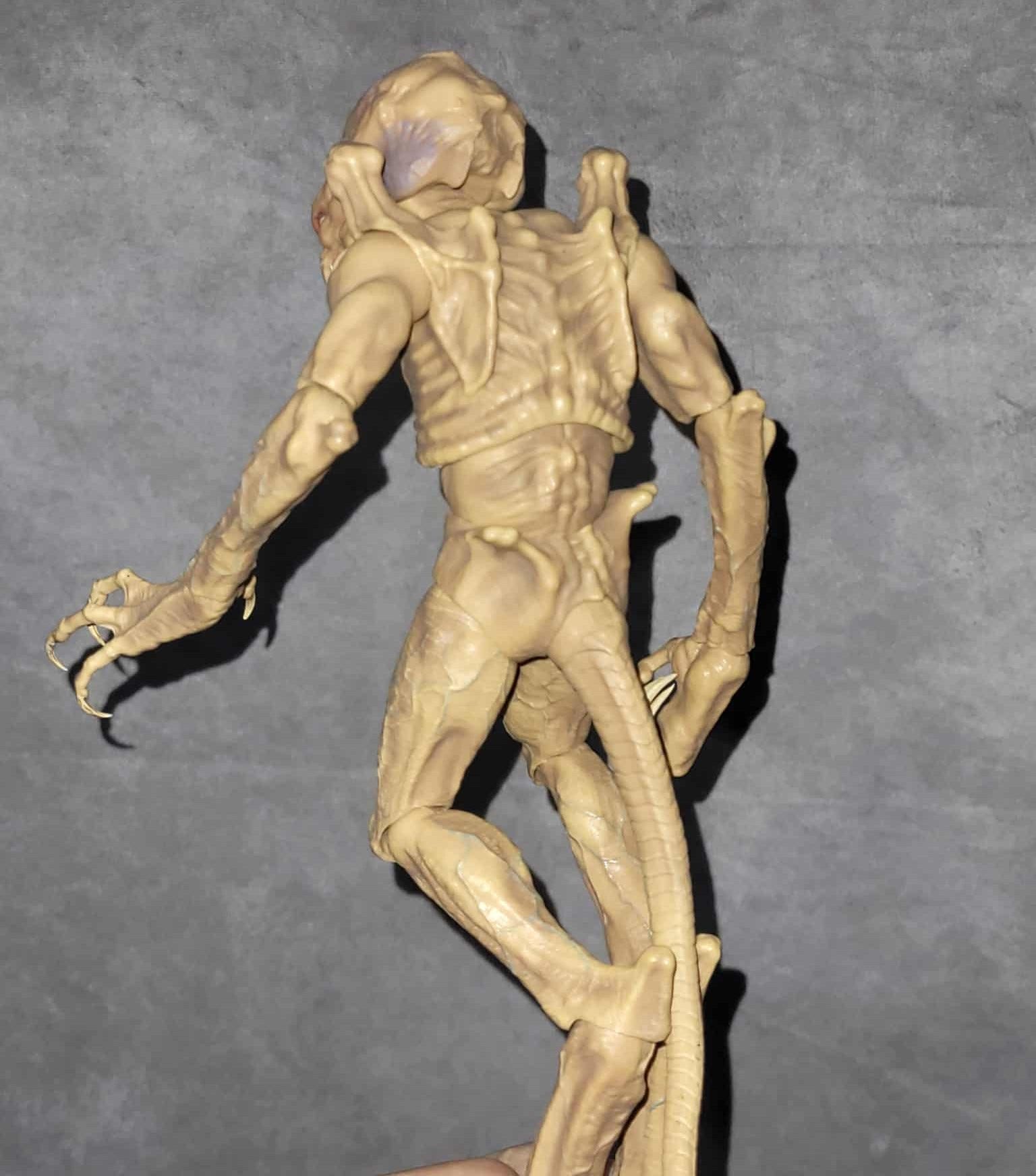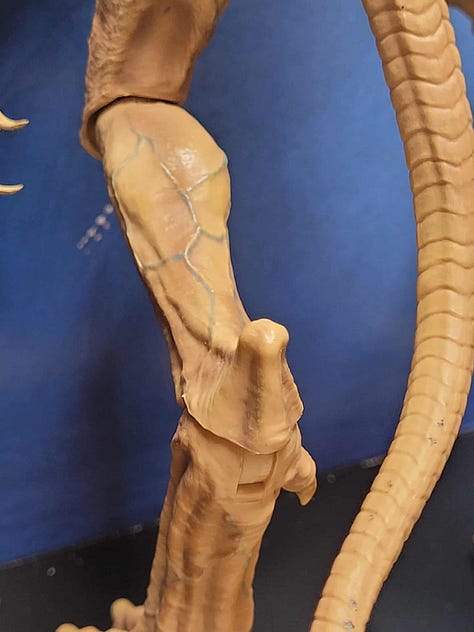 The sculpt is impeccable, covering for the joints where possible, and properly capturing the creature that one could call one of the best Alien ripoffs of all time. The paintwork is nicely subtle, with blue veins and texture shading that could be mistaken for lighting effects, but are actual coloring. Up close he really does look a bit like a fancy costume, while properly lit, he is terrifying.