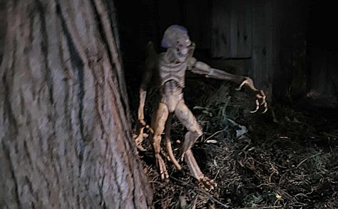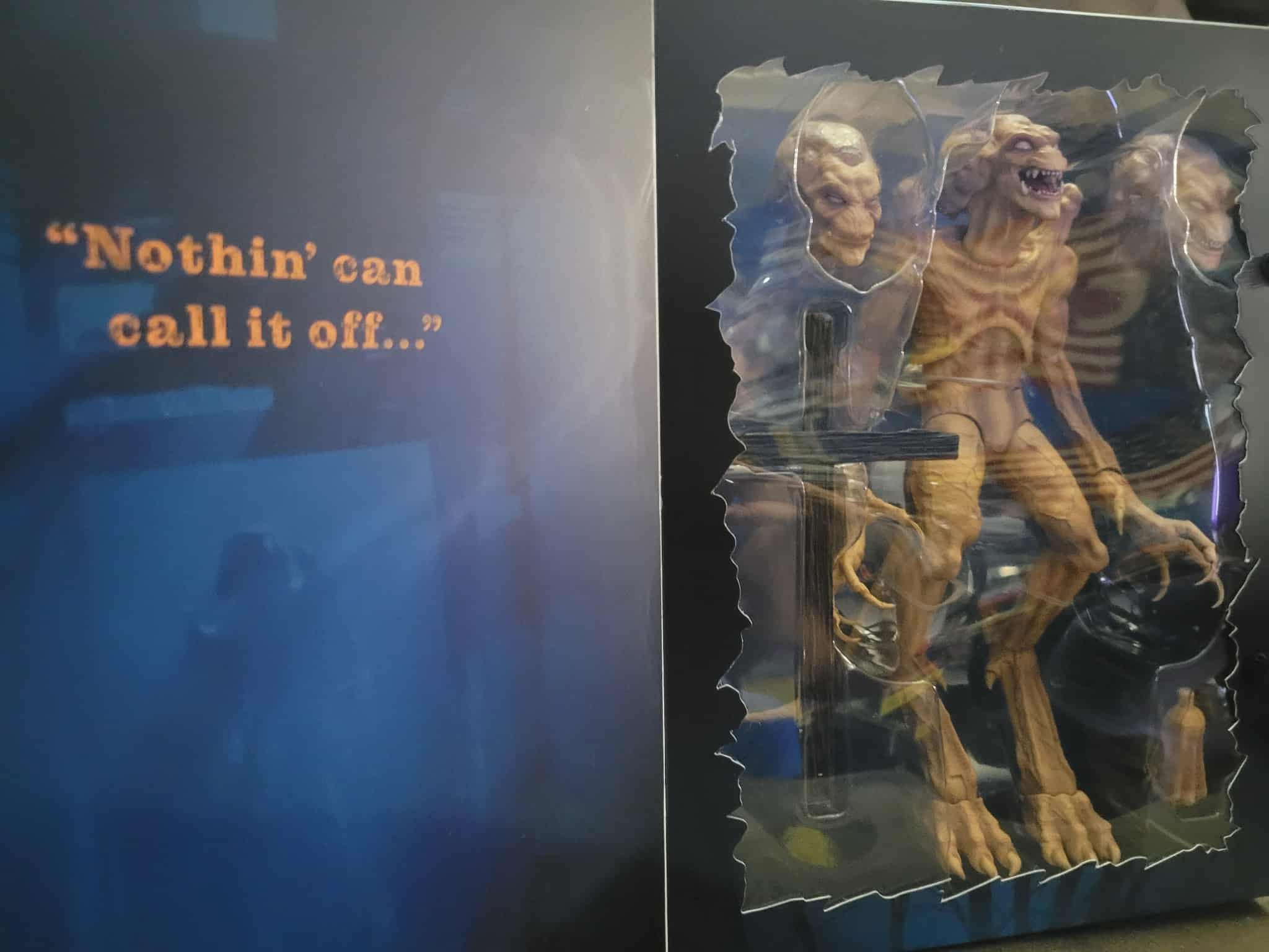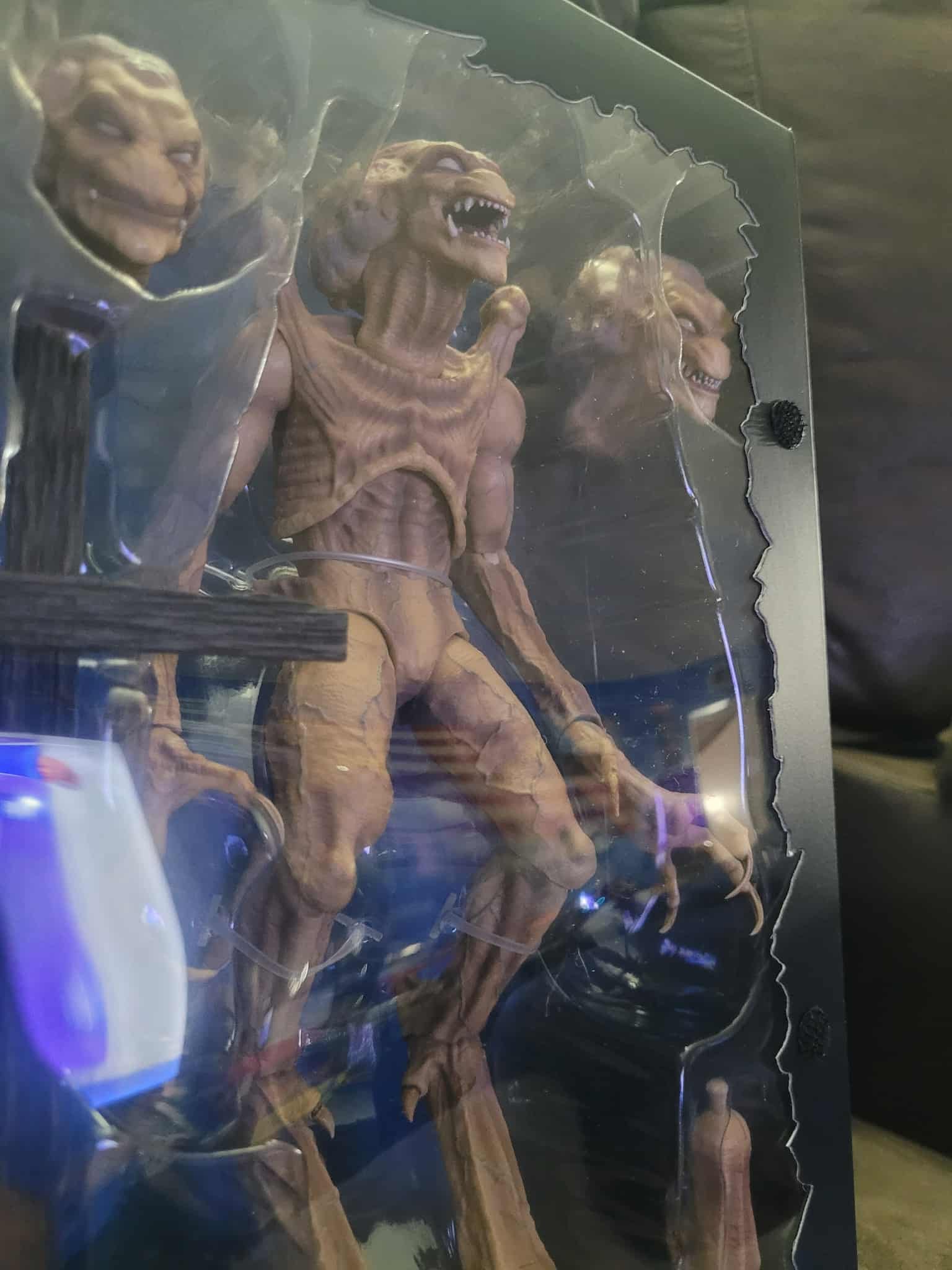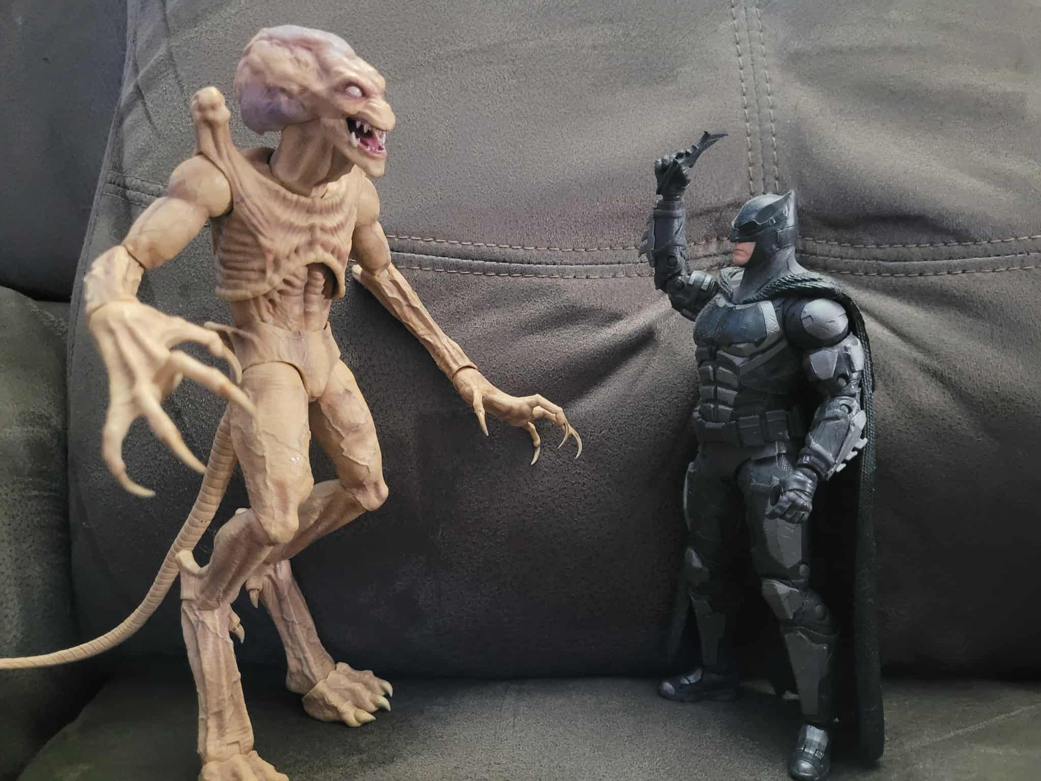 The package says it’s 1/12 scale, which is what Marvel Legends and Star Wars Black series are. It’s really not. It’s closer to 1/10, which is what most NECA and McFarlane toys are, which is to say humans are 7-inches and other characters scaled relative to that. Pumpkinhead is meant to stand around eight feet tall — here he is with a 7-inch McFarlane Batfleck figure. You be the judge.